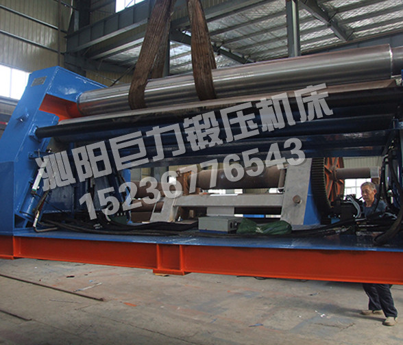 該四輥卷板機(jī)與對(duì)稱(chēng)三輥卷板機(jī)比較,它可以不借助其它設(shè)備模具,直接予彎板材端部,而且剩余直邊較?。凰梢圆皇拱宀恼{(diào)頭,而卷成工件。